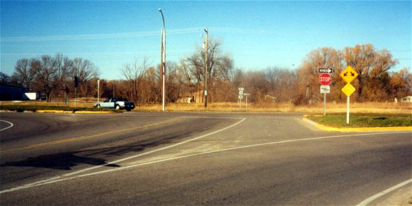 | MN 40 becomes SD 20 upon crossing the state line. Photo by Monte Castleman, taken May, 2002. |