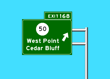In Fictional Cruise, a western bypass of West Point is constructed for I-57. This is the interchange at MS 50.