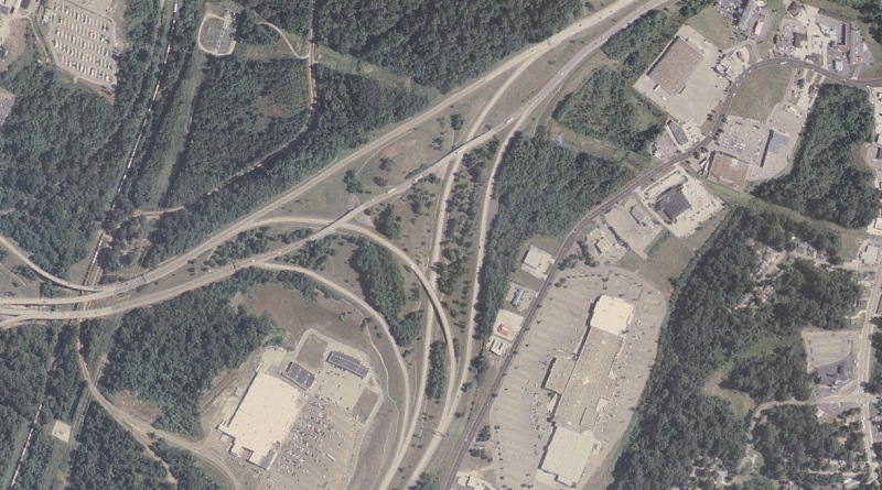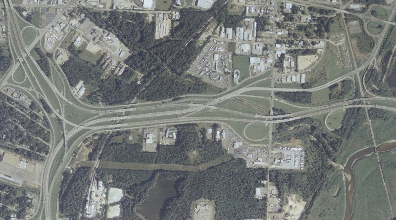 | This tangle of ramps shows most of the I-20/I-55 duplex, with I-55 coming from the south in the bottom left, I-20 from the northwest, plus the older US 51 freeway stub partially between the two. | |